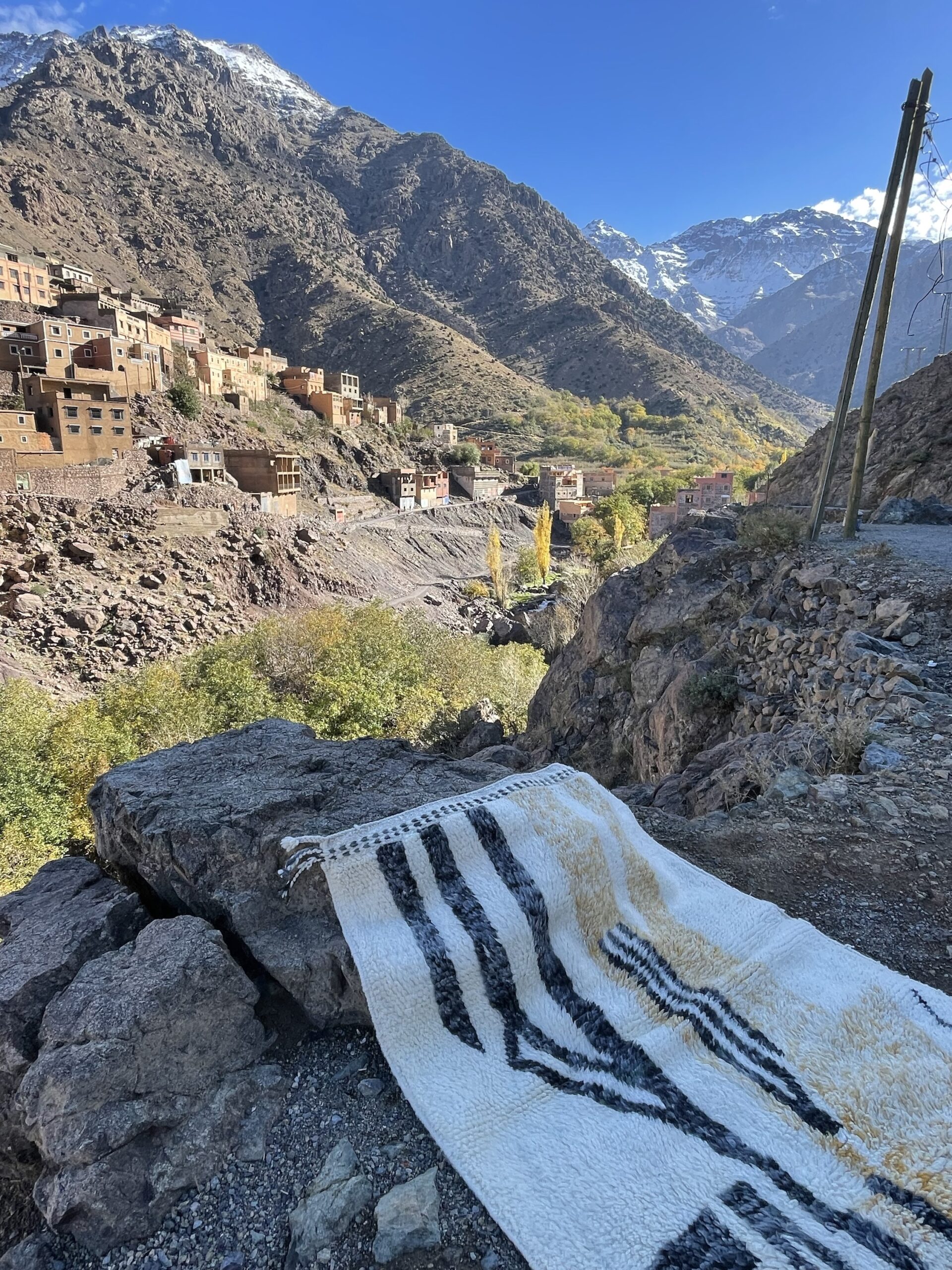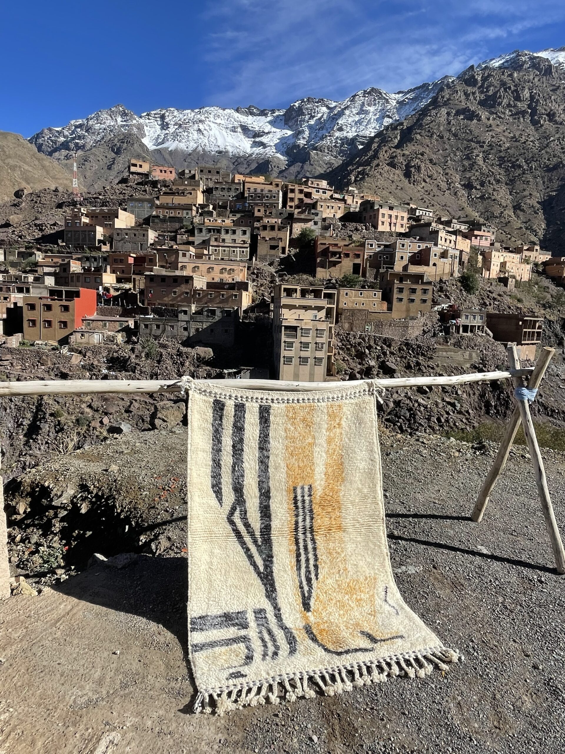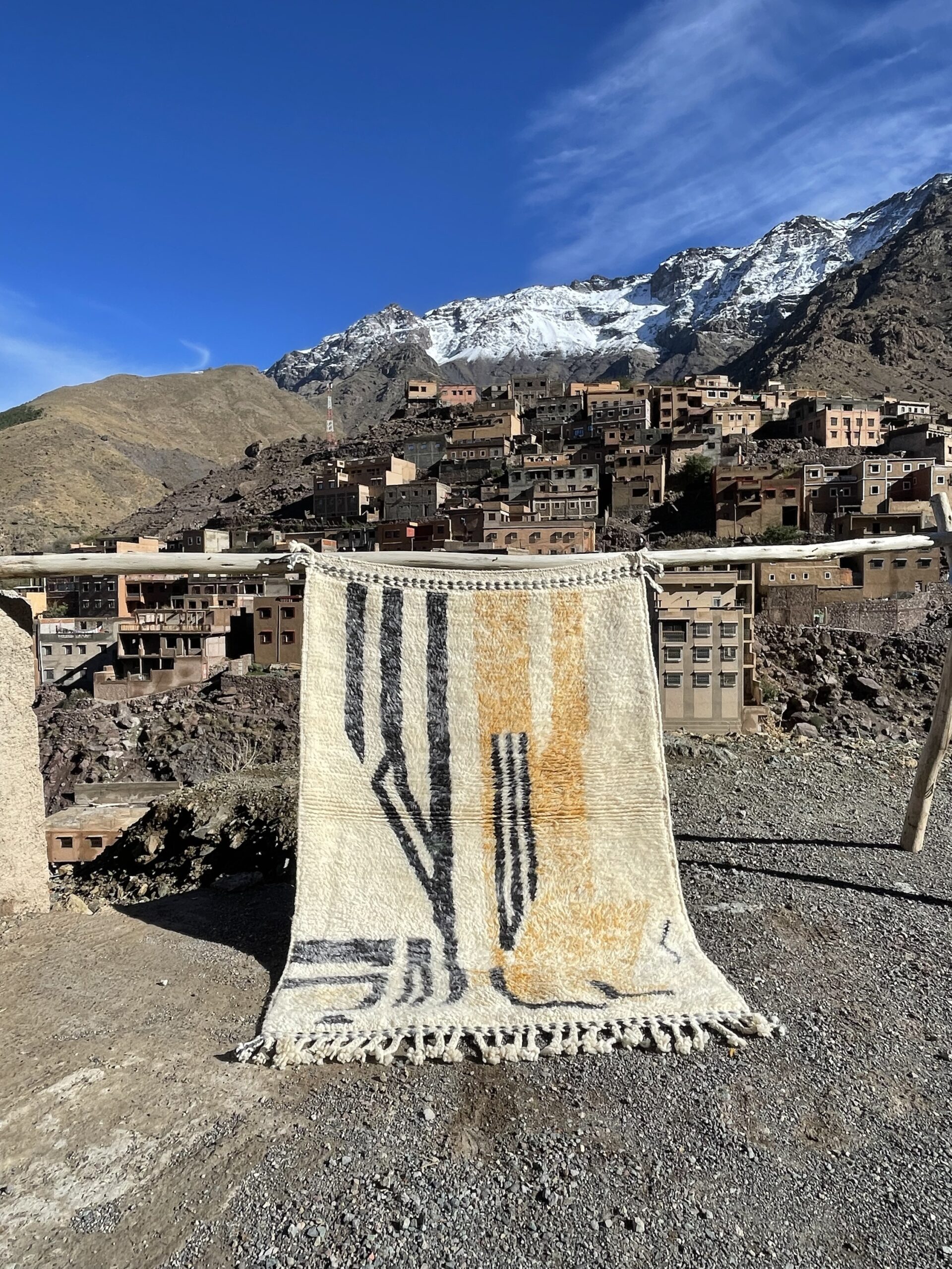Handmade by Amazigh women in the Atlas Mountains, this rug reflects centuries of weaving tradition blended with a contemporary look.