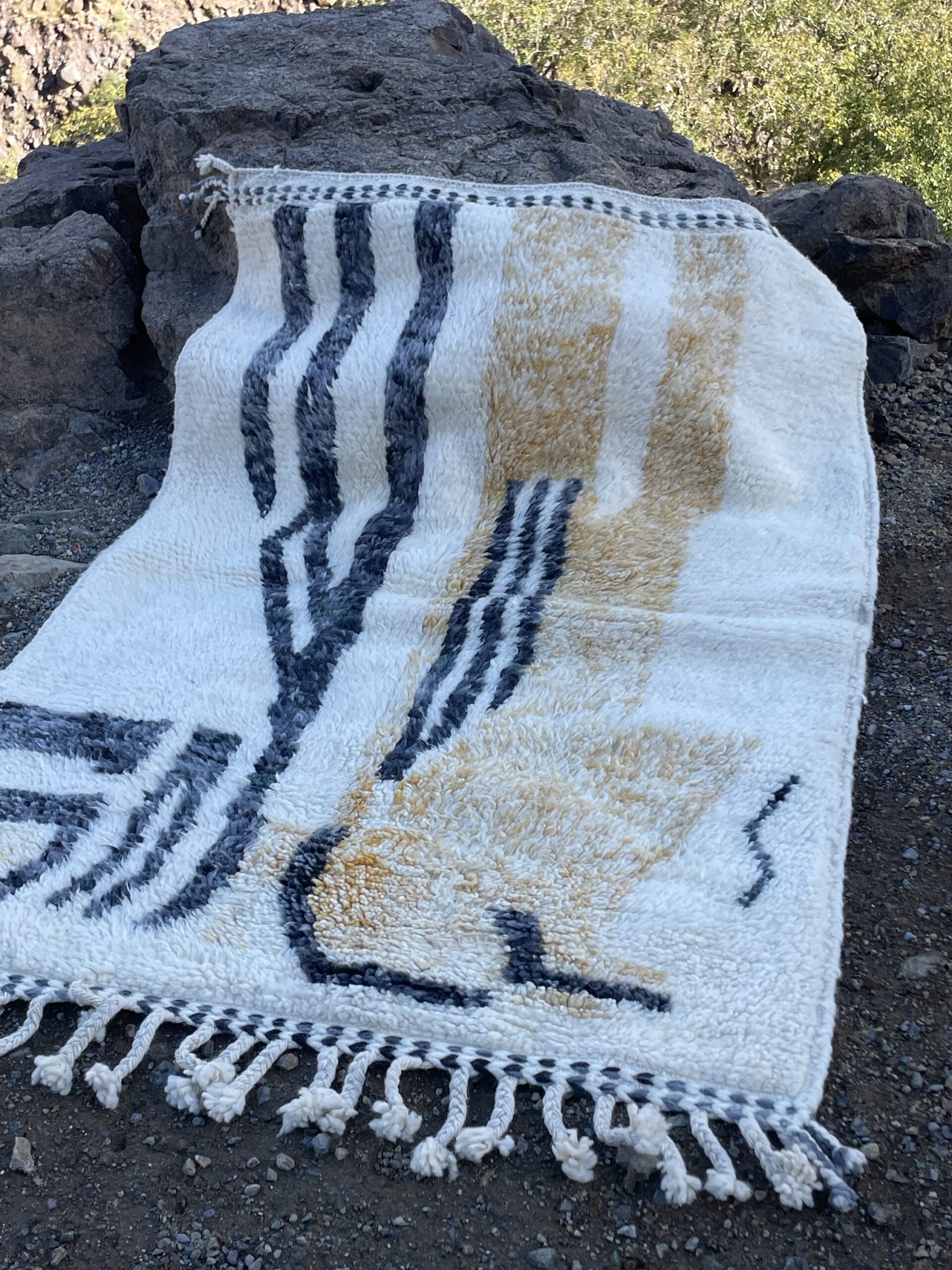 Discover the beauty of authentic Moroccan craftsmanship with this handwoven Beni Ouarain rug, entirely made from premium natural wool.