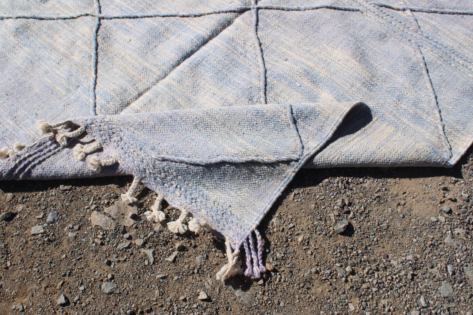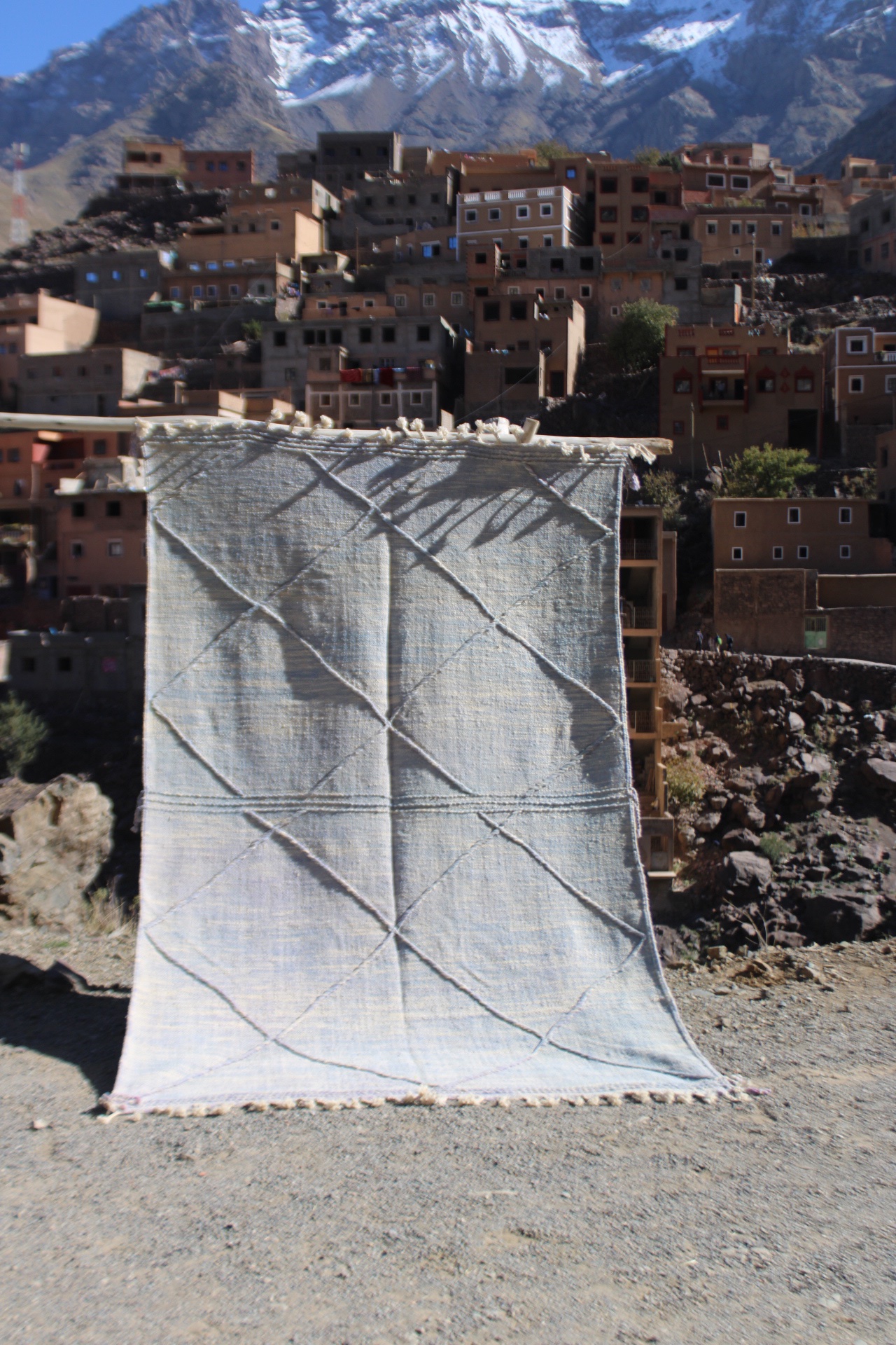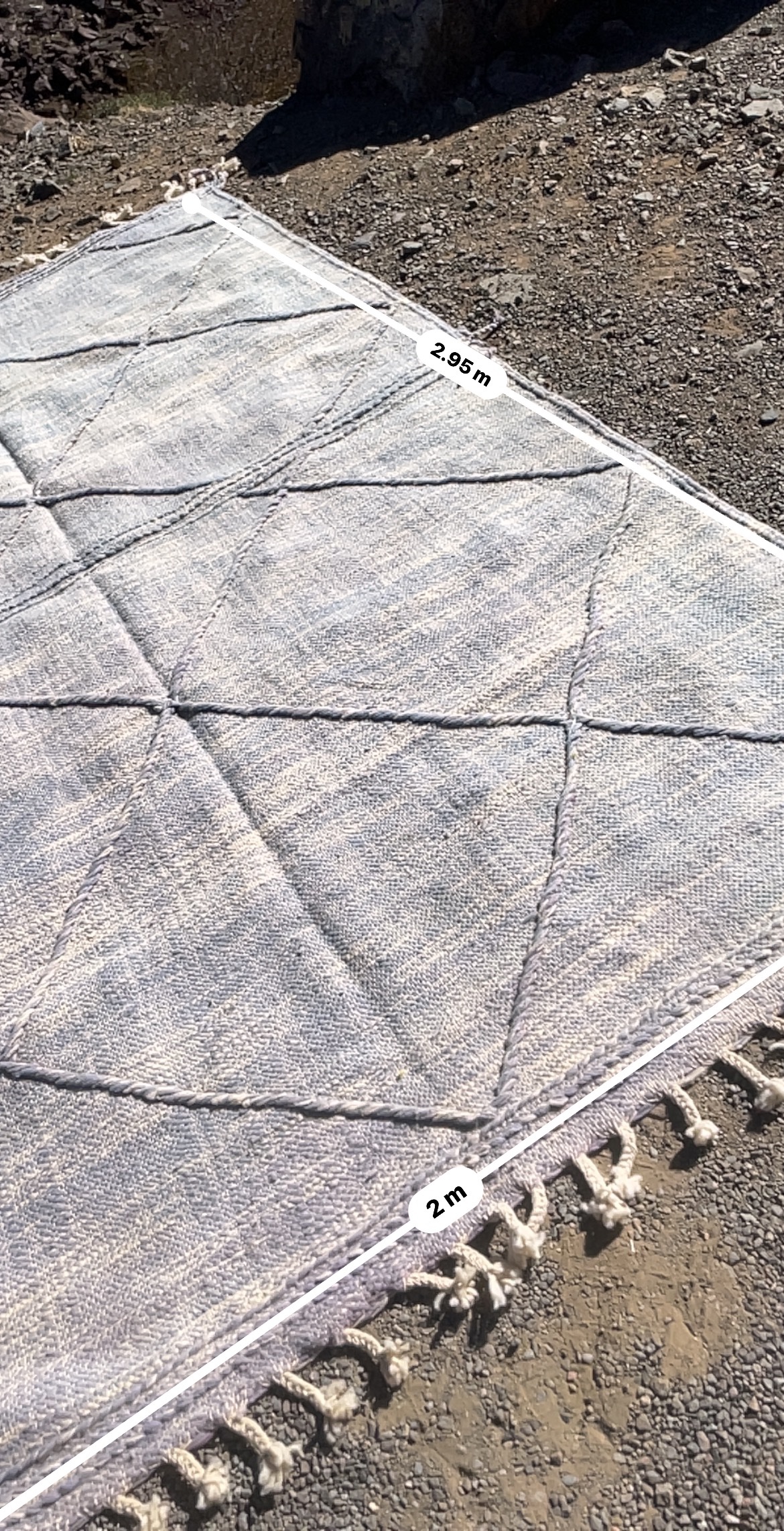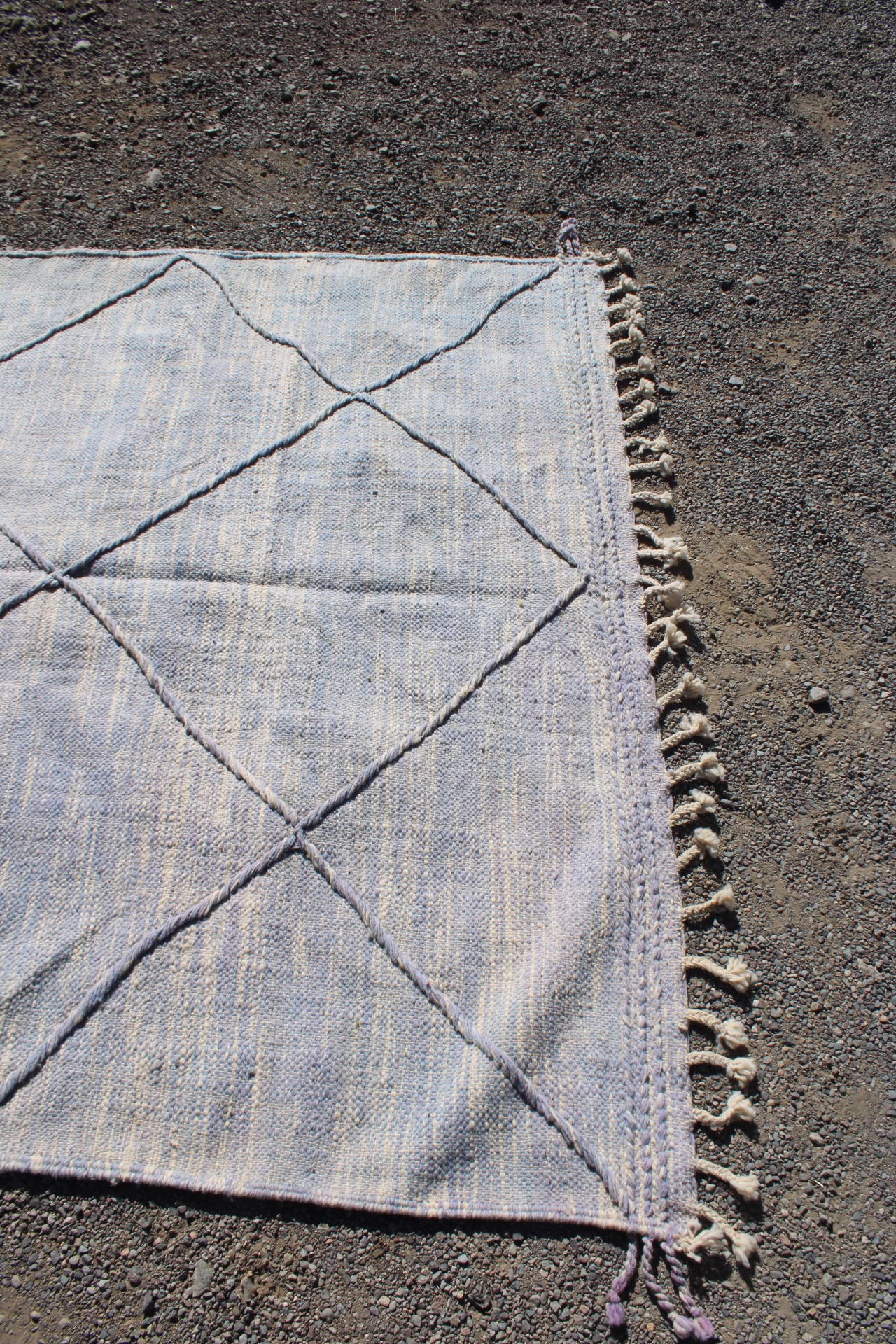 This Zanafi carpet is a traditional flatweave rug handcrafted by Berber artisans in the High Atlas region of Morocco. Known for its reversible weaving technique, geometric diamond patterns, and minimalist elegance, the Zanafi rug blends contemporary design with centuries-old craftsmanship. Each piece is woven from high-quality wool, making it durable, lightweight, and perfect for modern interiors, bohemian spaces, and minimalist décor.