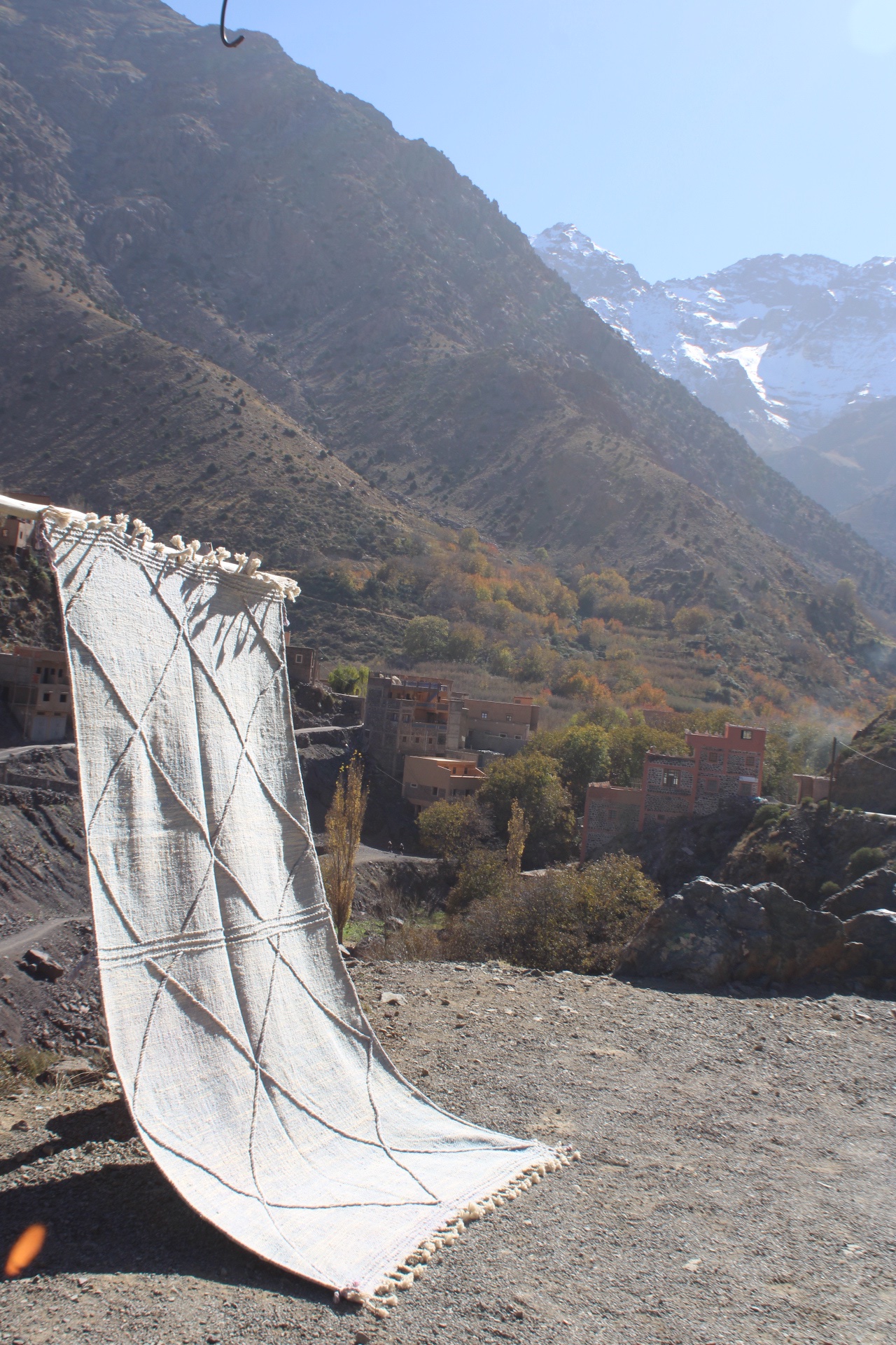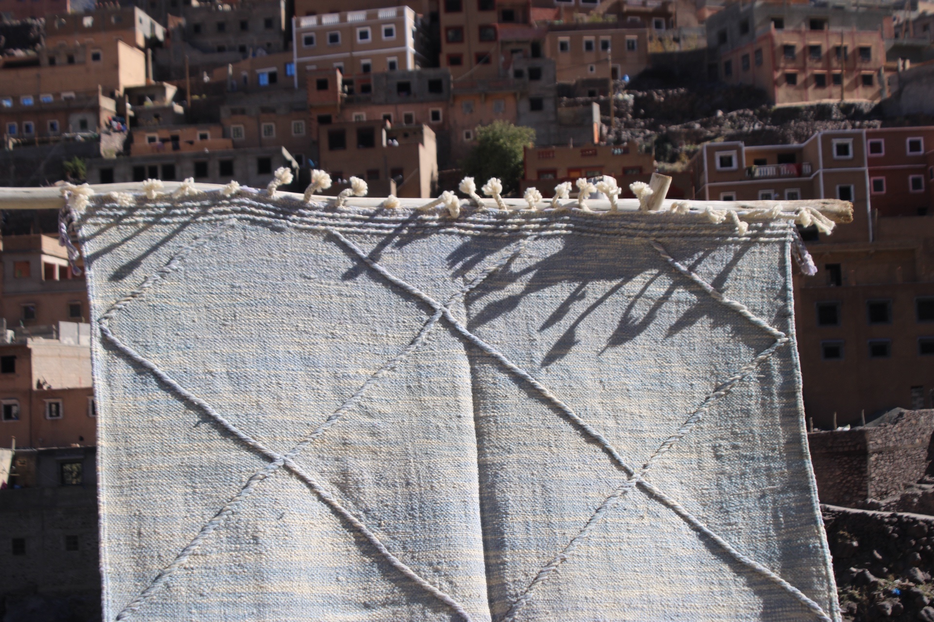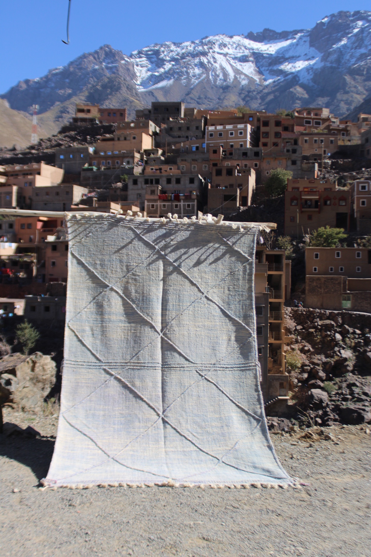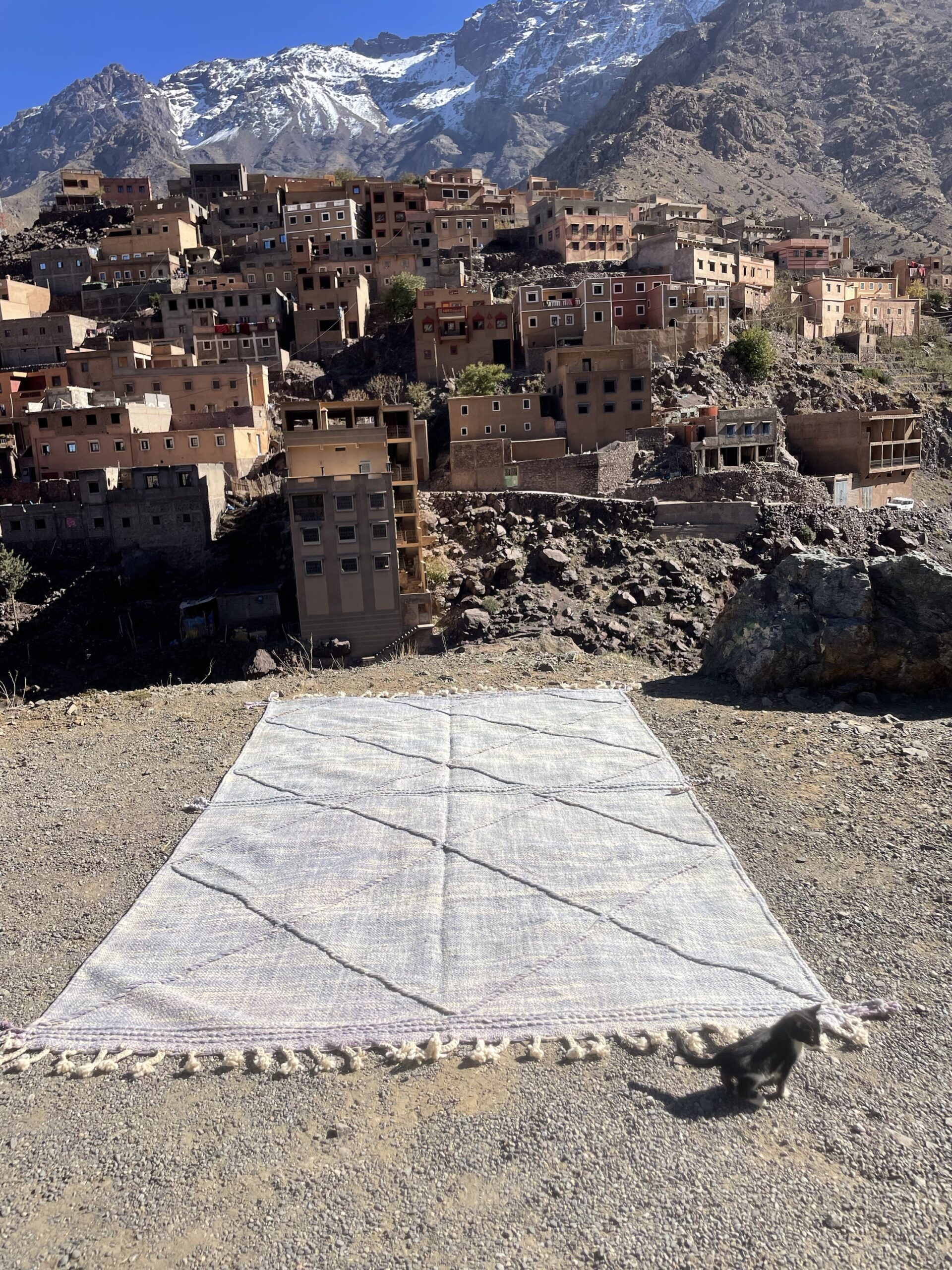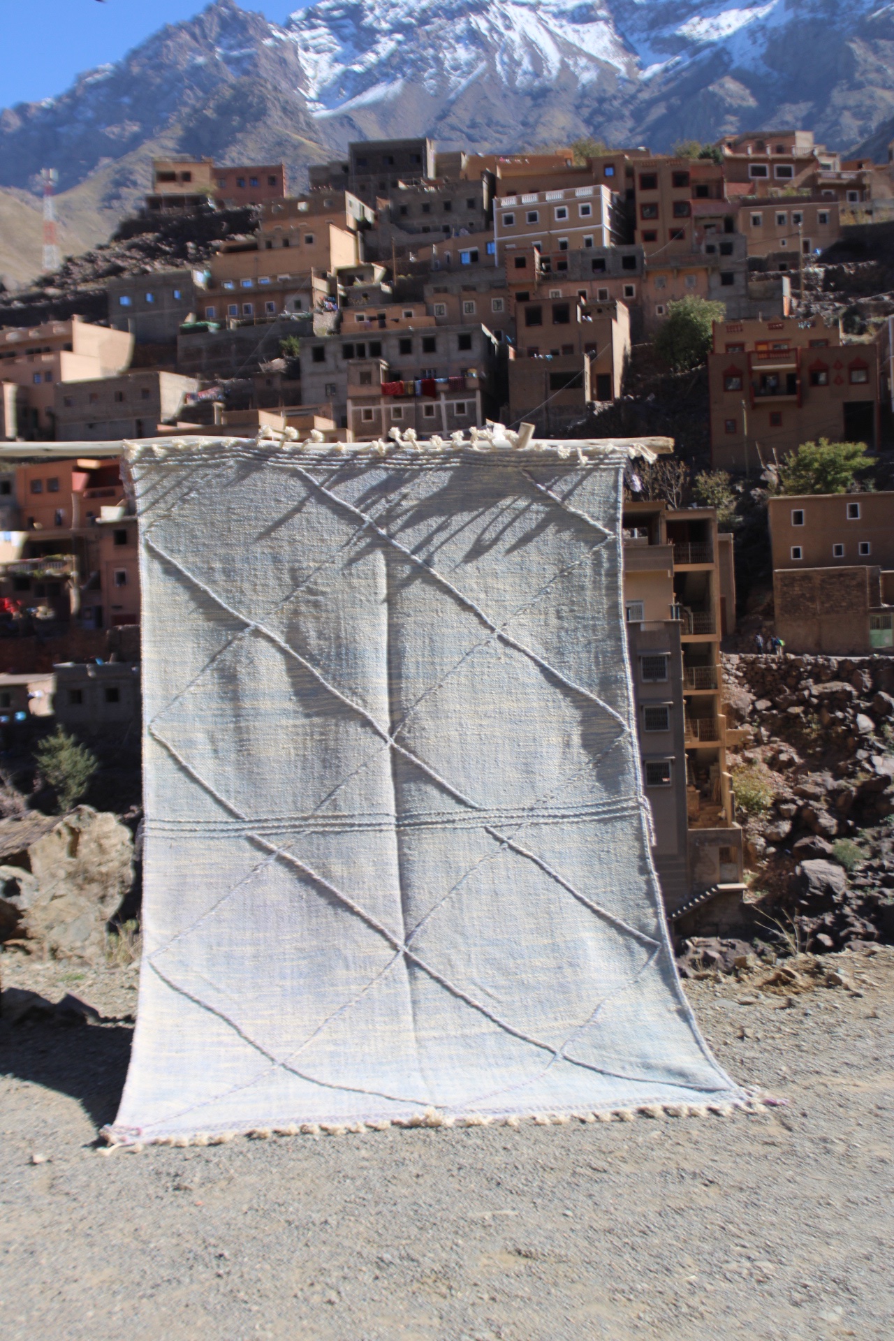 This Zanafi carpet is a traditional flatweave rug handcrafted by Berber artisans in the High Atlas region of Morocco. Known for its reversible weaving technique, geometric diamond patterns, and minimalist elegance, the Zanafi rug blends contemporary design with centuries-old craftsmanship. Each piece is woven from high-quality wool, making it durable, lightweight, and perfect for modern interiors, bohemian spaces, and minimalist décor.