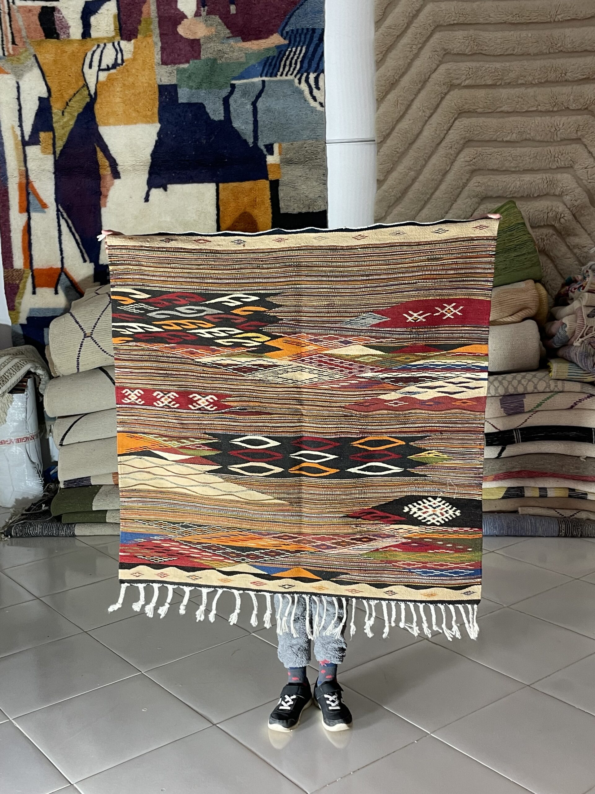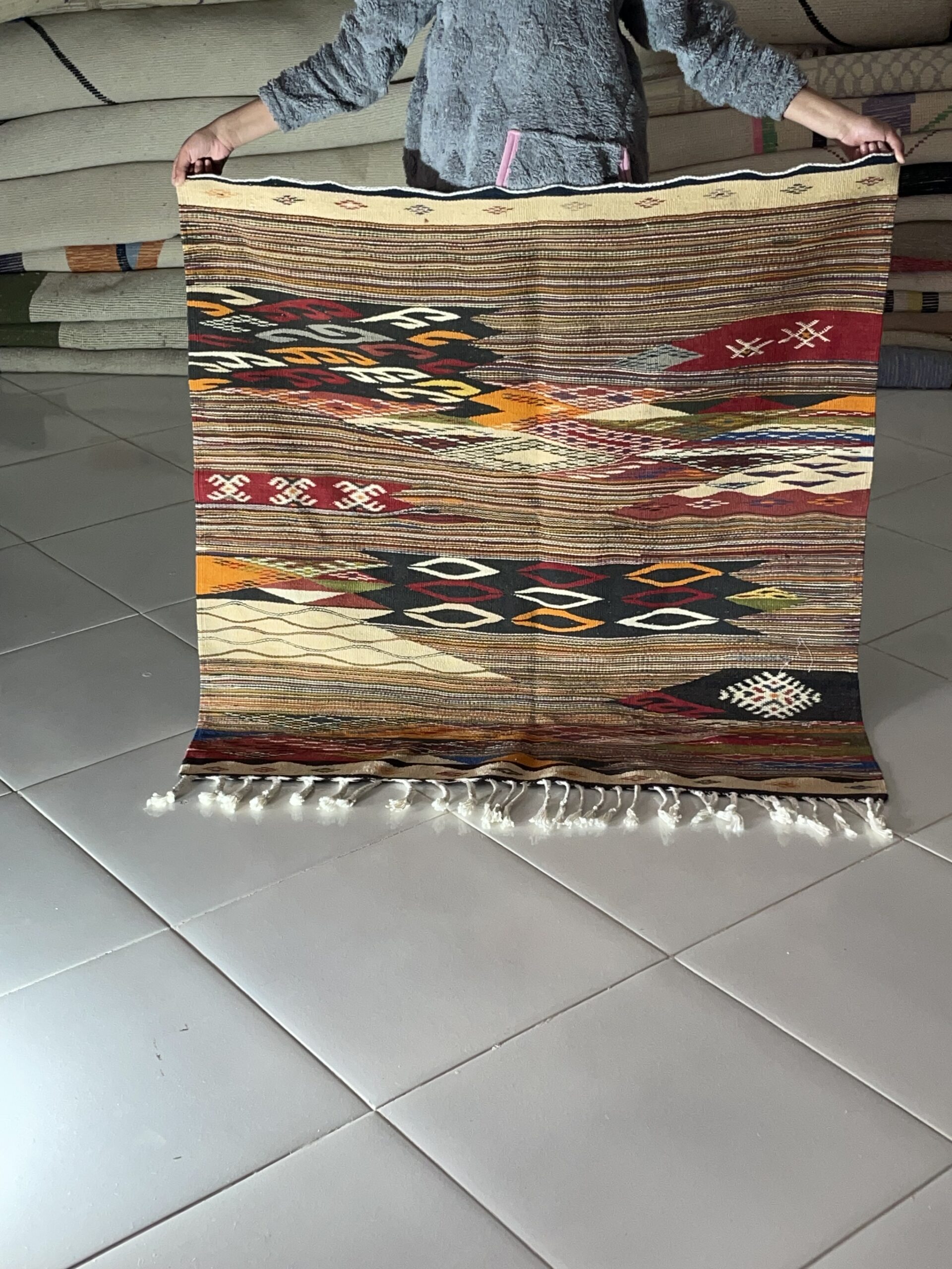 Moroccan Rug, Berber, Picasso Design, 100x100cm, 3.28ft, Square Rug, Kilim, Handmade, Boho, Abstract Rug