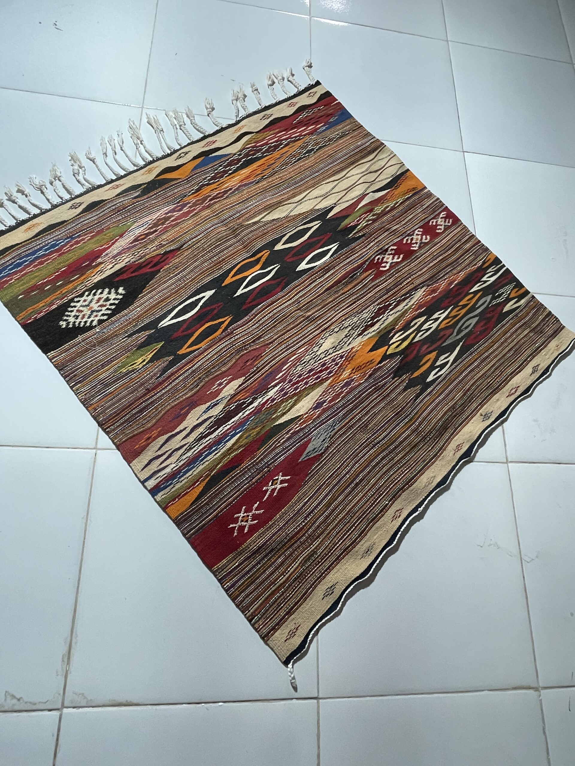 Perfect for small spaces, reading corners, living room accents, or even as wall décor. The flat-weave kilim construction ensures durability, lightness, and easy maintenance.