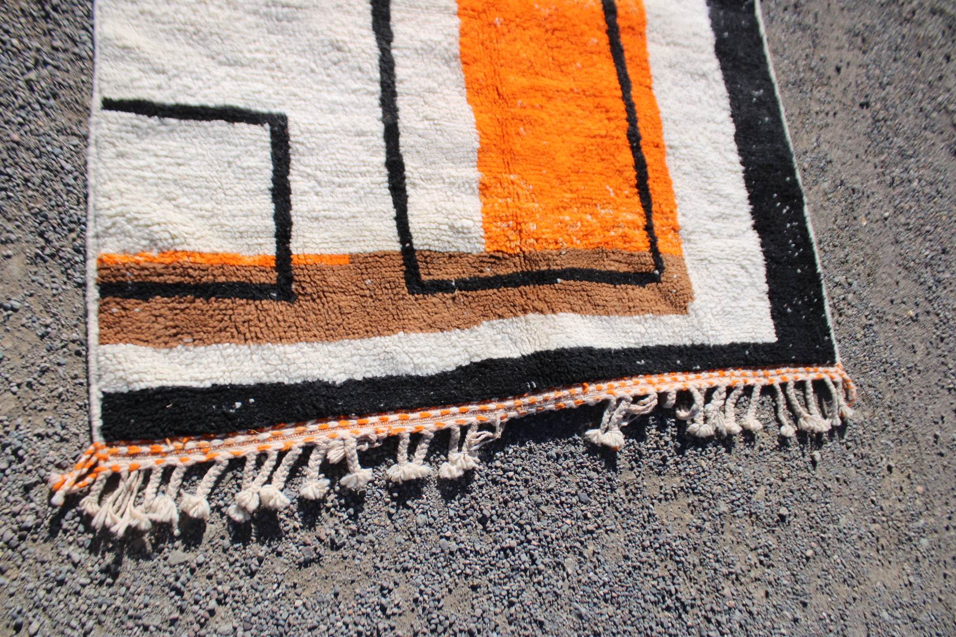 Siwe – Handwoven Moroccan Rug | Abstract Orange & Black Wool Carpet | 200×150 cm (6.5×5 ft) | Cooperative Adrar
