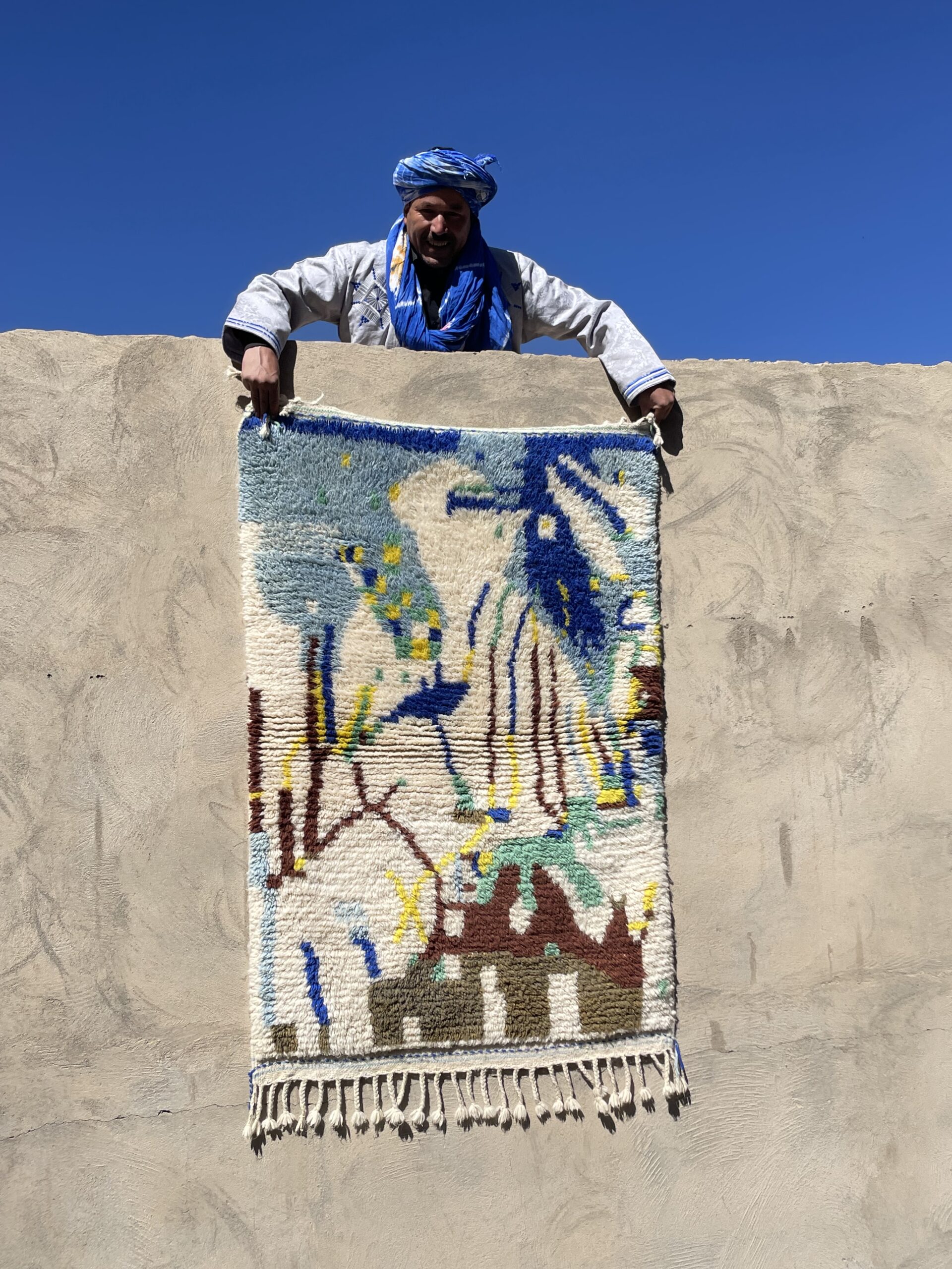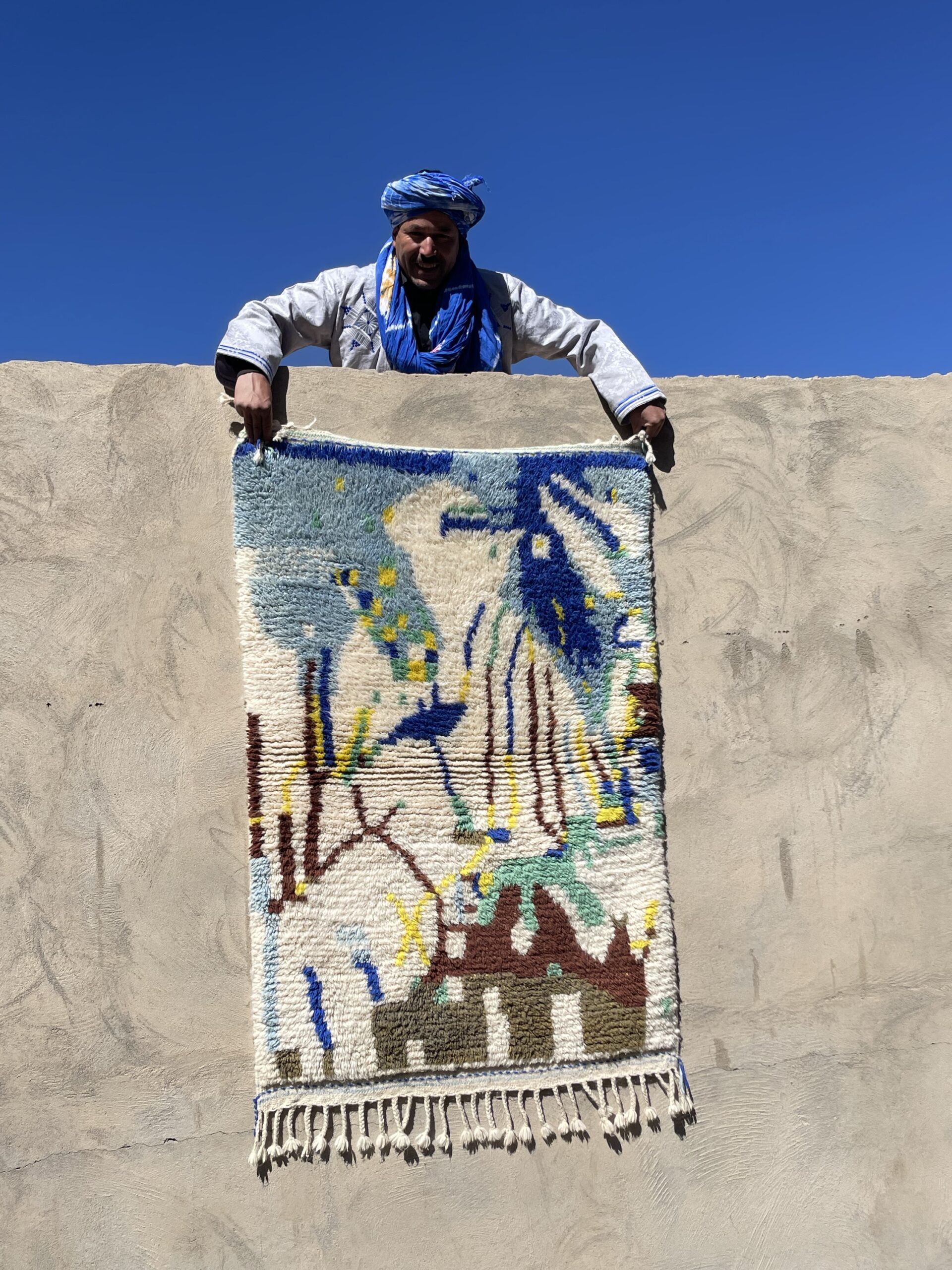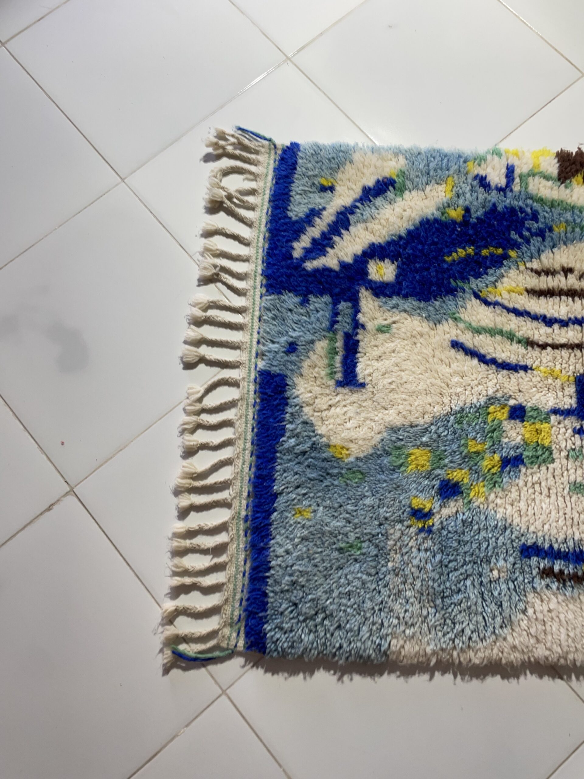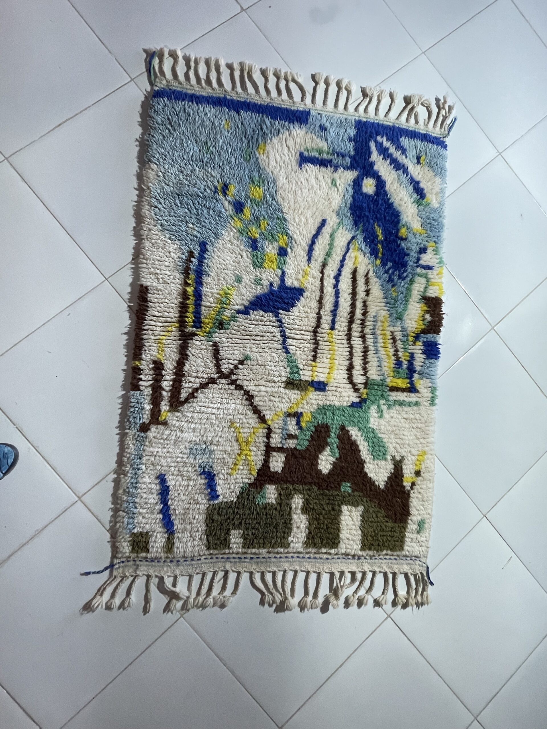Authentic Moroccan Azilal rug, handwoven with bold geometric patterns and vibrant colors. Each piece is one-of-a-kind and ready to ship within 5–7 days. Perfect for brightening up your living room or bedroom.